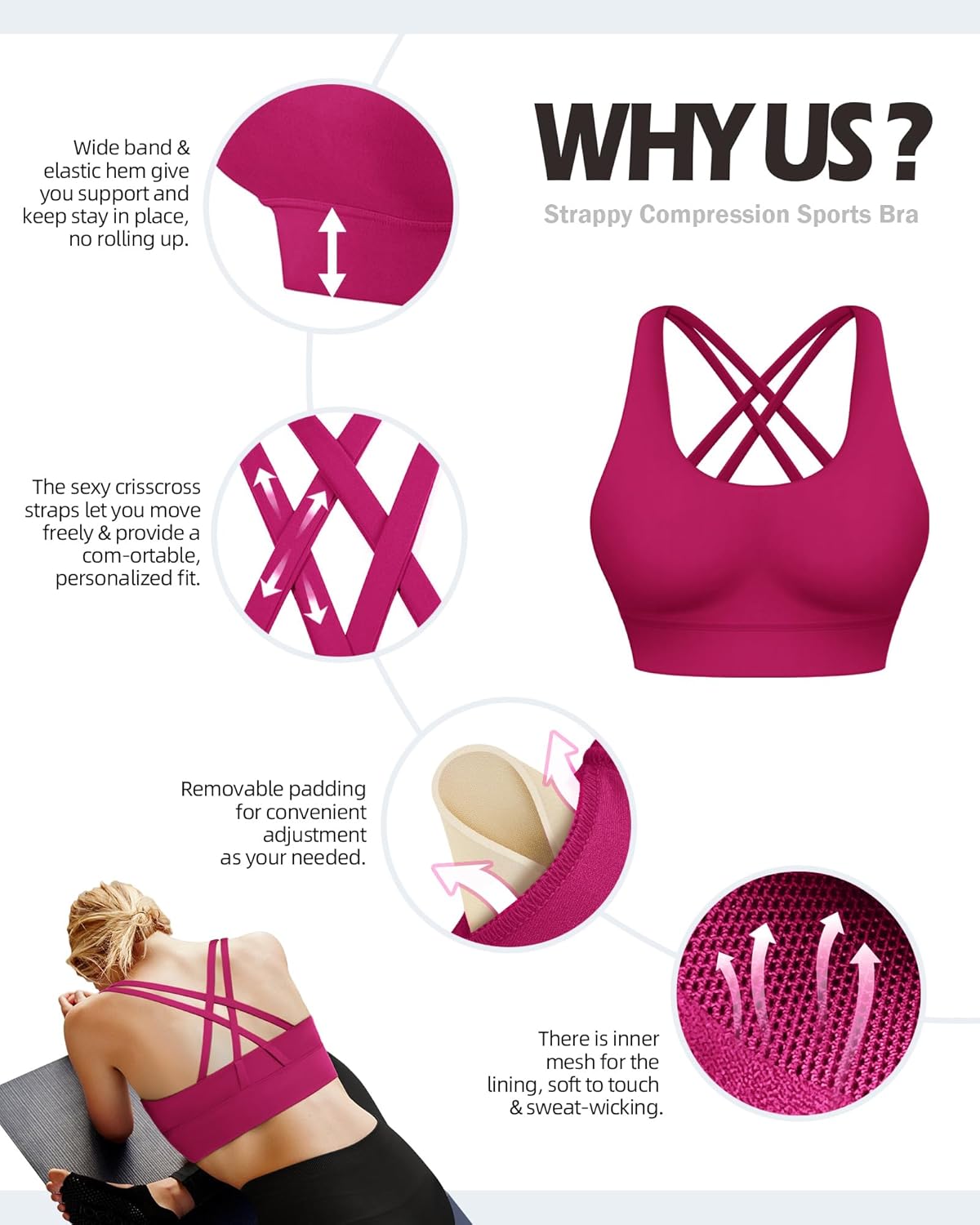 8 reviews for Ama Larsi High Impact Strappy Sports Bra for Women Supportive Padded Crisscross Back Running Yoga Workout Bra